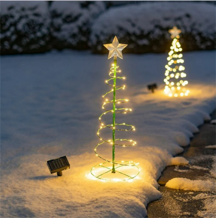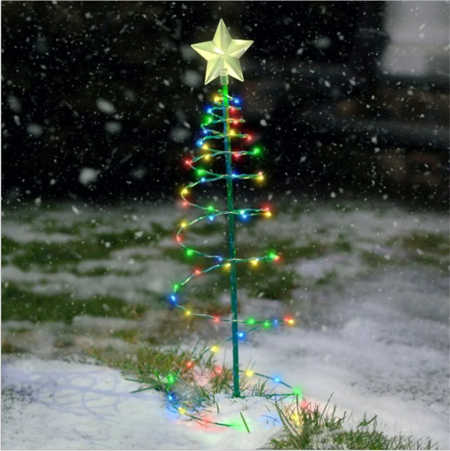 Solar LED Christmas Tree Lamp Outdoor Shape String Fairy Star Lights Holiday Yard Landscape Lawn Decoration Garden Ornament